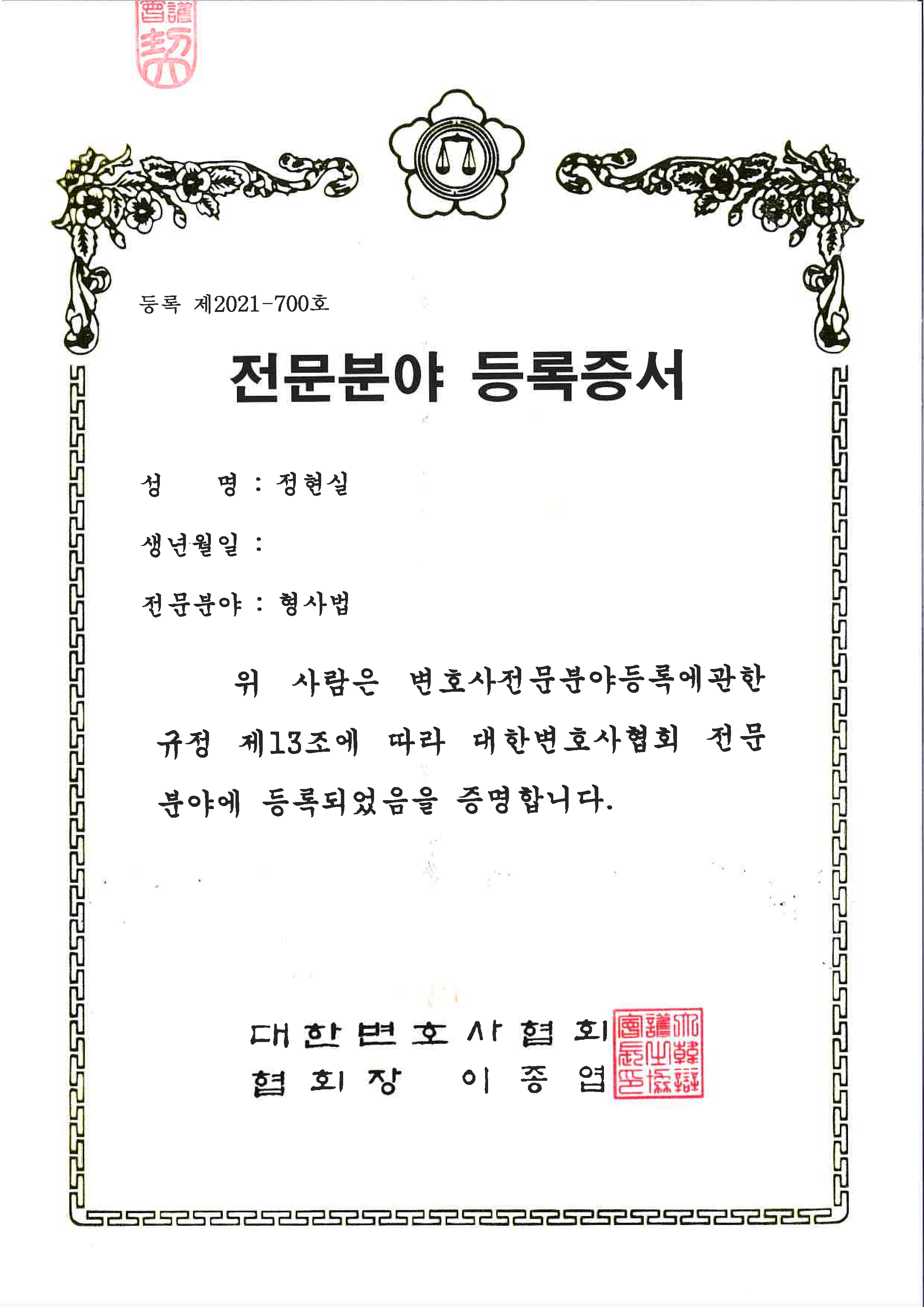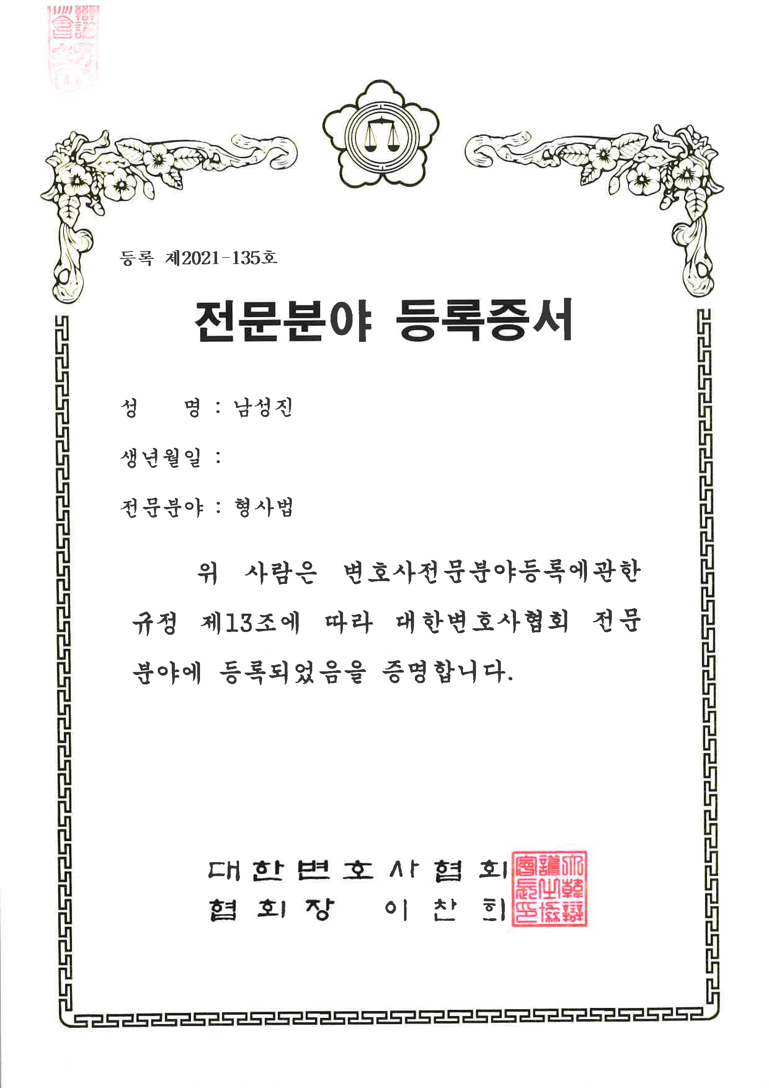 법무법인 선율로는 대한변호사협회에서 형사법 전문 분야에 대해 인증을 받은 변호인이 각 사건별로 담당하여 전문적이고 체계적인 법률서비스 시스템을 구축하고 있습니다.